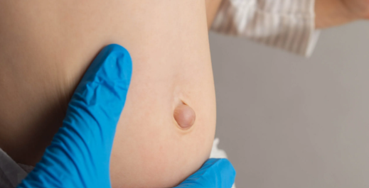 This appears around the navel area , it causes the swelling around the belly button which can be increased due to coughing or physical exertion